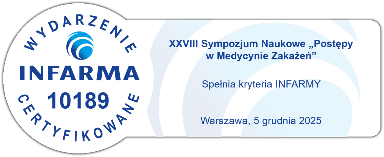 mamy przyjemność już po raz XXVIII zaprosić Państwa do wzięcia udziału w Sympozjum Naukowym „Postępy w Medycynie Zakażeń”, które odbędzie się w dniach 5 – 6 grudnia 2025r. w Warsaw Presidential Hotel (d. Mariott), Al. Jerozolimskie 65/79.